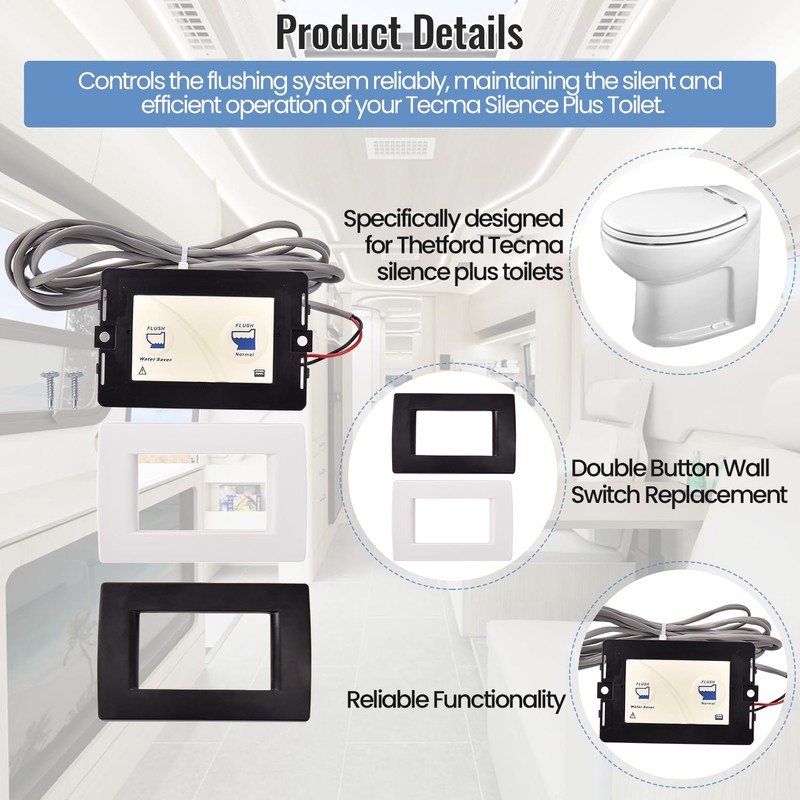Fuabator 36387 Dual Button Wall Switch Toilet Control Panel for Thetford Tecma Silence Plus Toilet, Easy Installation and Reliable Performance