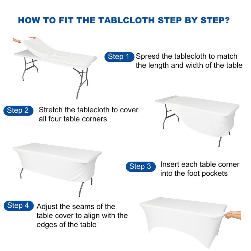 - 【Dimension】:4FT:Suitable for a 48inch Length*24inch Width*30inch Height table;5F:Suitable for a 60inch Length*30inch Width*30inch Height table;6FT: Suitable for a 72inch Length*30inch Width*30inch Height table;8FT: Suitable for a 96inch Length*30inch Width*30inch Height table.With bright patterns and various size options,Applicable for dessert table,banquet,reception,trade show,crafts display,even some massage table,indoor and outdoor use,good for a causal dinner,picnic,camping and parties.