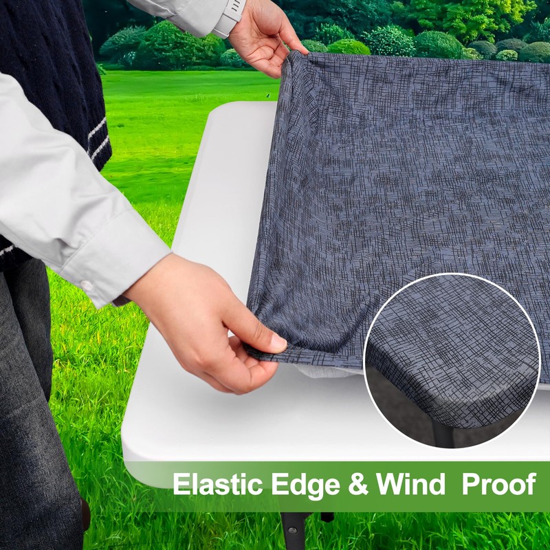 - Easy to Clean:Outdoor table cloth hand wash or Machine wash.Machine wash with water in gentle cycle.Picnic table covers maybe there is slight wrinkle when taken out,but folding table cloth will become smooth on the table quickly.avoid bleach;fitted table cloth dry at a low temperature, and refrain from ironing.
