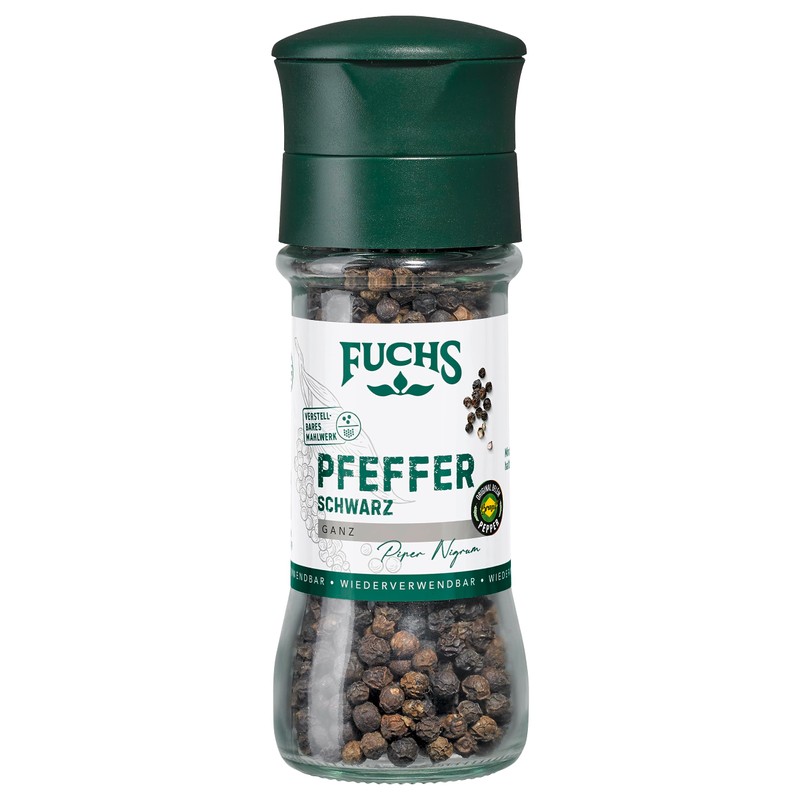 Fuchs Spices - Belém Pepper Black Whole - Original Black Belém Pepper, Ideal for Dark Sauces with Adjustable Grinder - 50 g in Reusable Mill