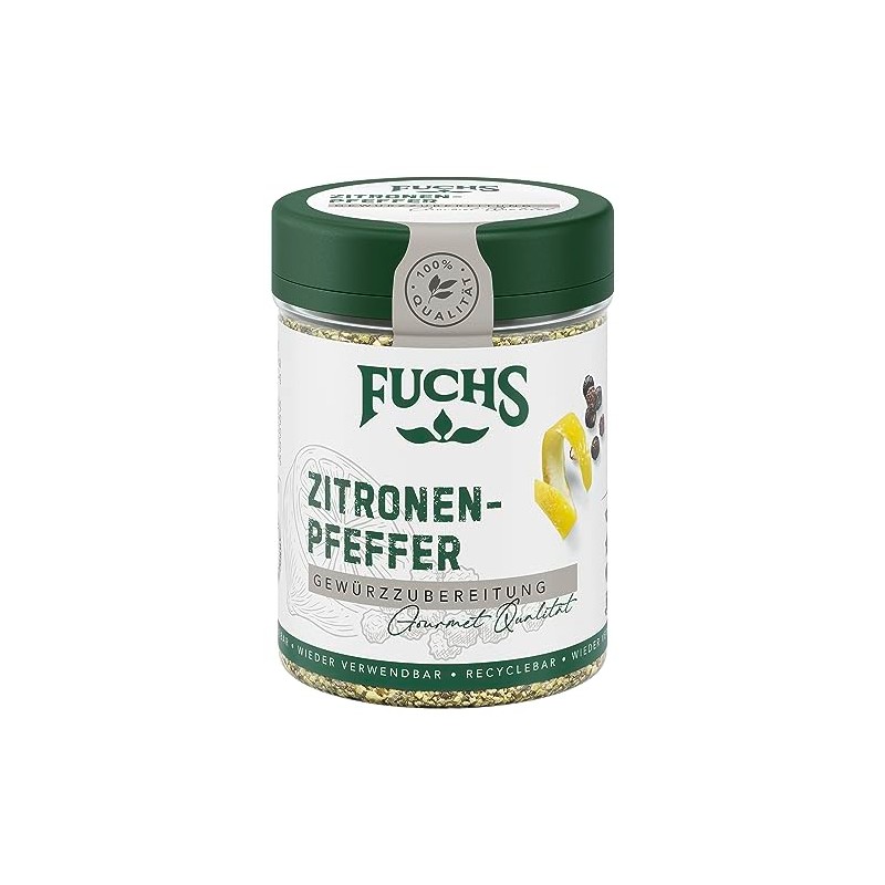 Fuchs Spices - Lemon Pepper Spice - Spice Preparation for Salmon, Zander and Cod - Natural Ingredients - 75 g in Reusable, Recyclable Tin