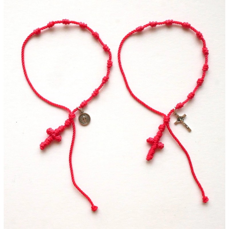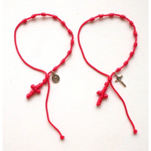 This wrist red cord rosary will fit any size wrist from 6" and up.