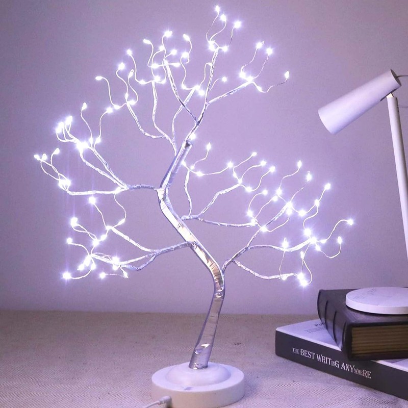 FUCHSUN $$$ 108 LED Bonsai Tree Light, Battery/USB Powered 20 Inch Tabletop Artificial Tree Lamp for Living Room Bedroom Christmas Home Decor, 8 Modes & 6 Hours Timer (White)