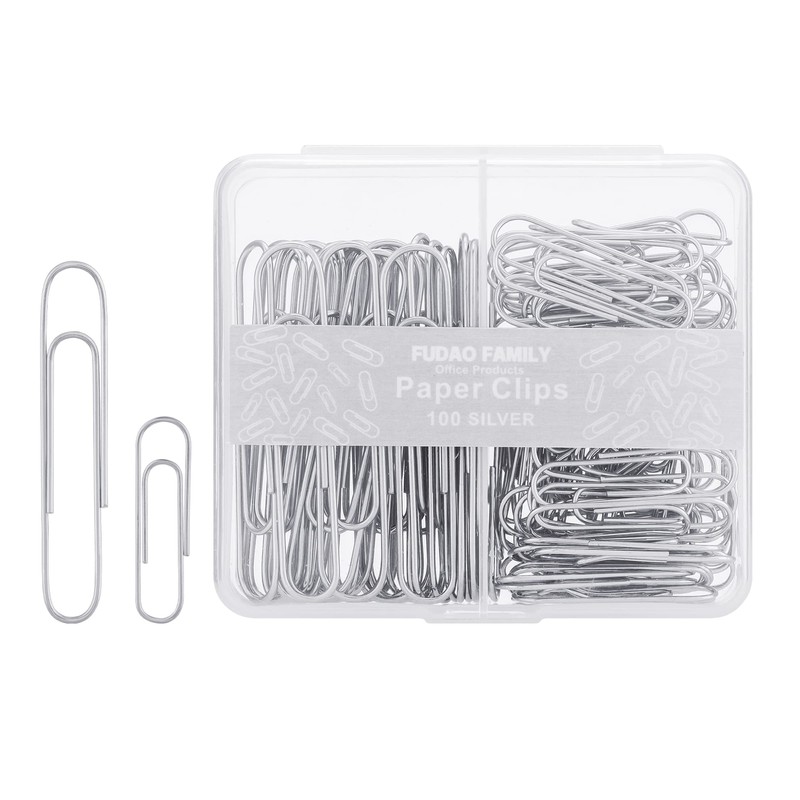 FUDAO FAMILY Set of 100 Assorted Sizes Nickel-Plated Paper Clips - 50 mm and 28 mm - Office Supplies Paper Clips