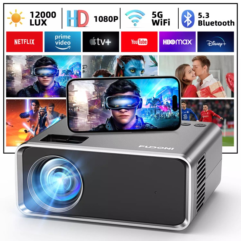 FUDONI Projector 1080p Full HD 5G WiFi Bluetooth 4K LED Smart Home Theater Movie HDMI
