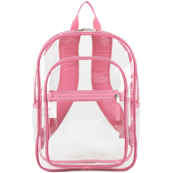 FUEL Clear Backpack Heavy Duty PVC Transparent Backpack Large Clear Book Bag for College Work, Pink