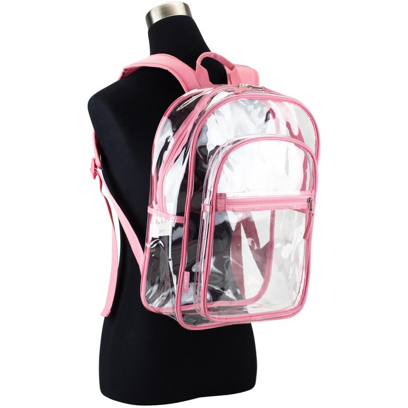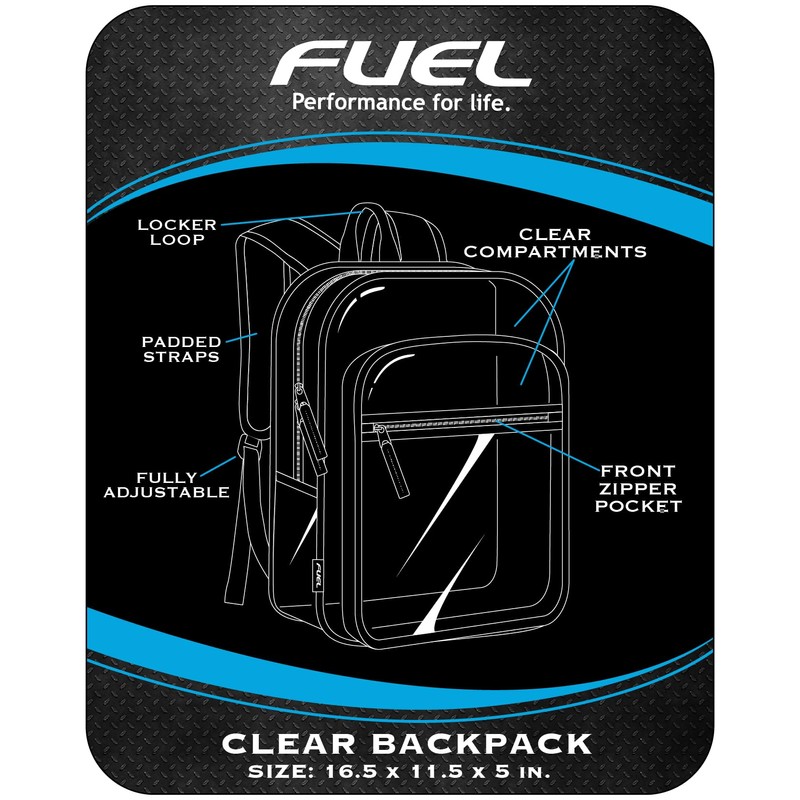 - FEATURES: Clear compartments for security-sensitive places, front zipper pocket, locker loop for hanging, fully adjustable padded shoulder straps