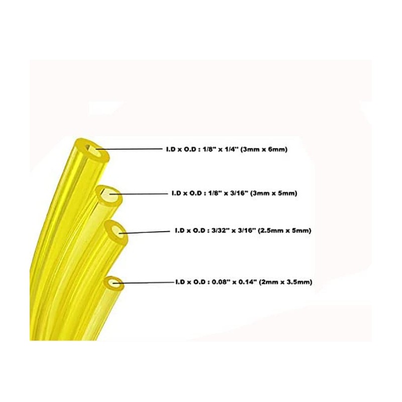 - Fuel Line Hose Tube .D x O.D: 0.08" x 0.14" 3/32" x 3/16" 1/8" x 3/16" 1/8" x 1/4" 4 sizes a set with different diameter ,each 6Feet。