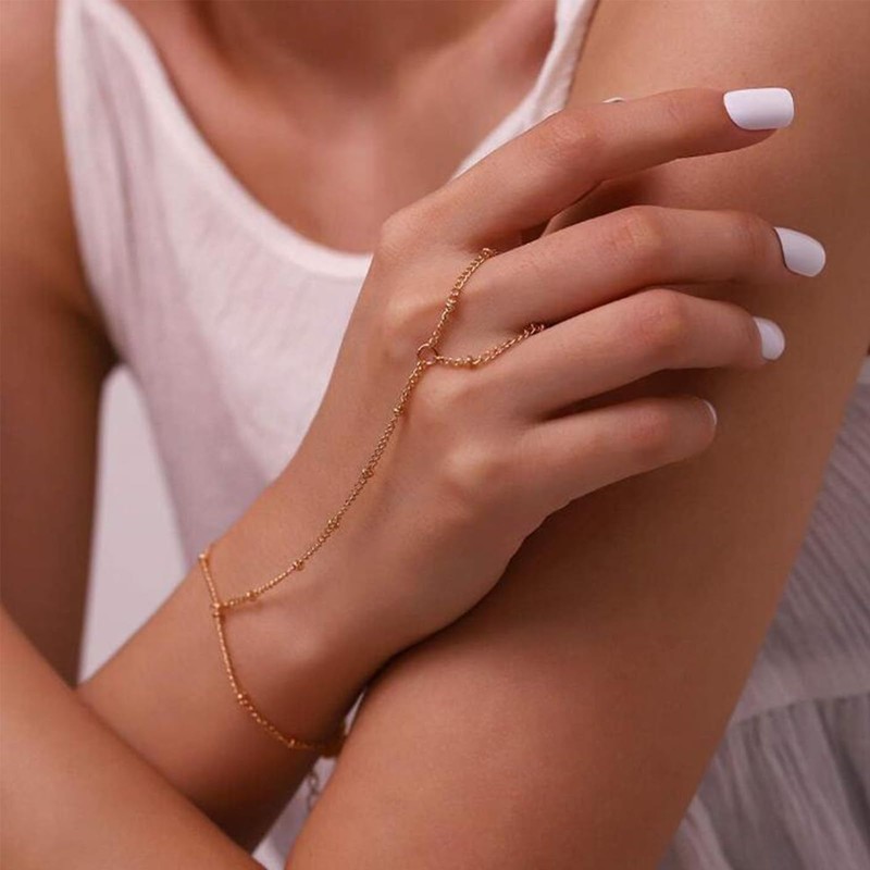 - Elegant design for any occasion: the gold hand chain stylishly combines a finger ring with a bracelet, creating a cohesive look. Perfect for parties, weddings, beach holidays or everyday use.