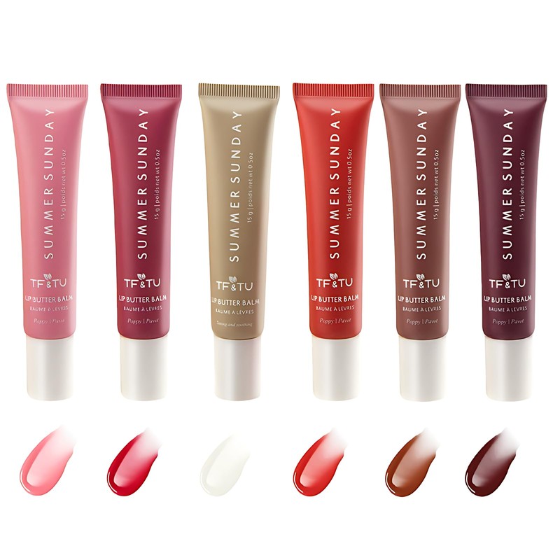 - 6 Vibrant Tinted Lip Balms: A set of 6 butter-based lip balms in varied sheer colors, offering subtle tint options for everyday wear or layered looks