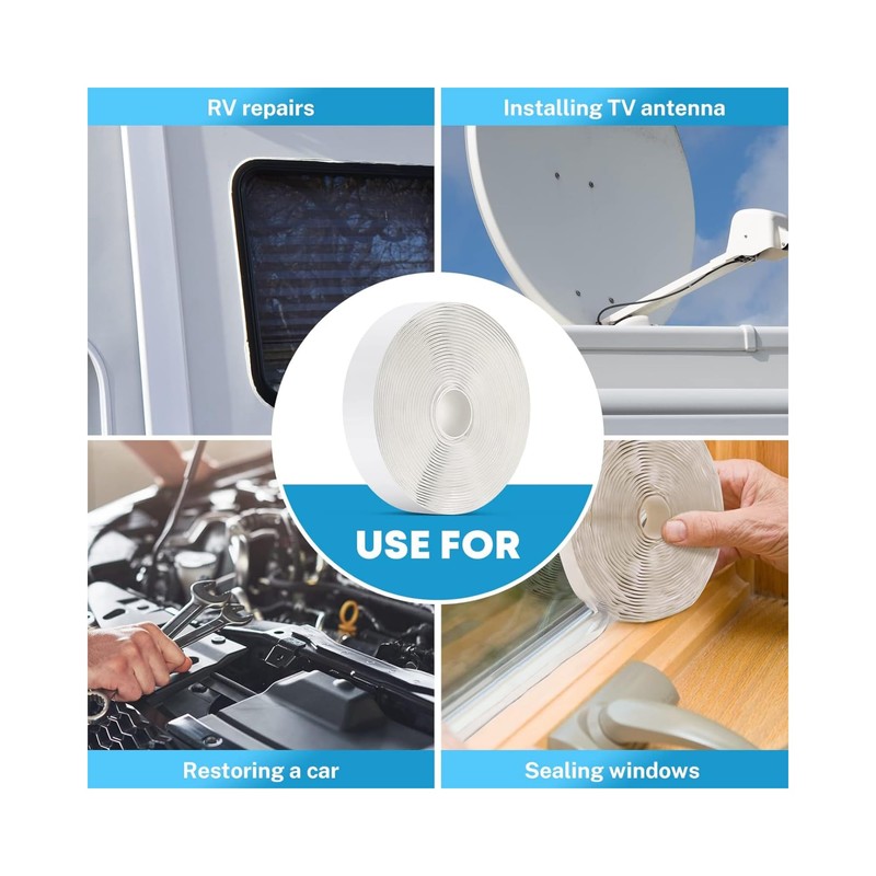 - Our premium RV sealant is made from superior butyl rubber, strong adhesive for quick and easy installations. Serve as the perfect RV butyl tape, it ensures a reliable seal around your RV windows. Say goodbye to leaks, drafts, and noises and enjoy a smoother ride.