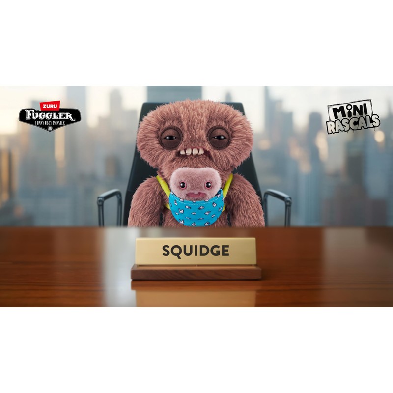 Fuggler Mini Rascals 9-inch Assortment Series 1 (Double Trouble) (Squidge (Brown - Long Pile) by ZURU, Funny Ugly Monster Plush Toy