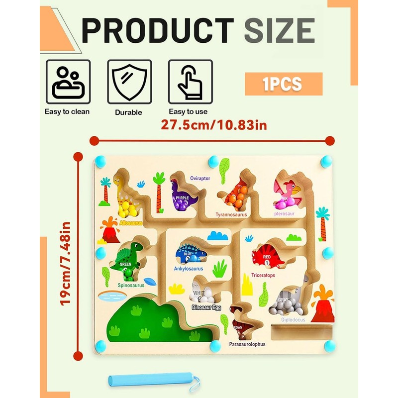 - Erkunden Sie Ein Lustige Zahlen- Und Farbenlabyrinth: Das Magnetspielzeug für Kinder ist wie ein Dinosaurierlabyrinth gestaltet. Jeder Dinosaurier ist farbenfroh und die verschiedenen Dinosaurier entsprechen den Zahlen 1–10. Mit dem Magnetstab können Kinder die Magnetkugeln der entsprechenden Farben und Zahlen in die entsprechenden farbigen Dinosaurier ziehen und so spielerisch das Erkennen von Farben, Zahlen und Zählen erlernen