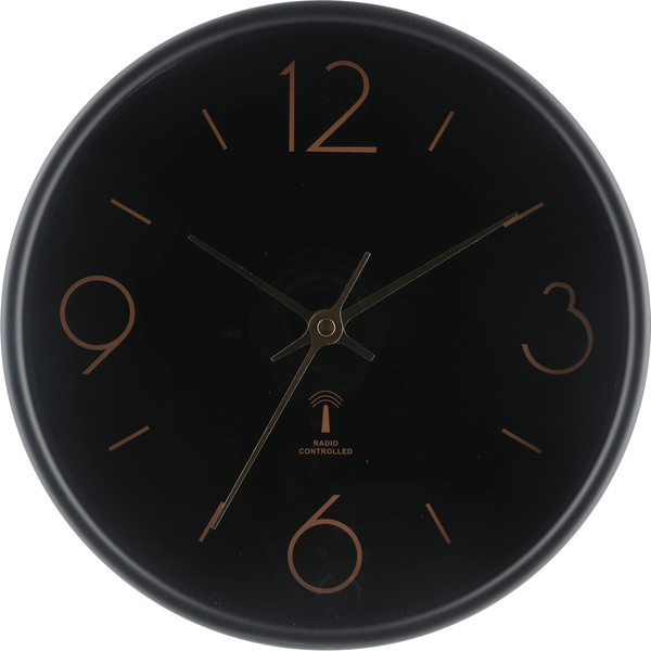 Fuji Boeki 28193 Wall Clock, Width 10.0 x Depth 1.8 x Height 10.0 inches (25.5 x 4.5 x 25.5 cm), Black, Radio Watch, Small Size