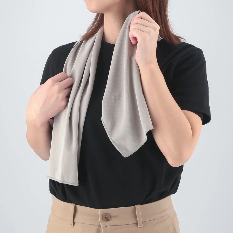 Fuji Boeki 29374 Cool Towel with Portable Bottle, Cooling Towel, UV Heatstroke Prevention, Pastel Color, Width 11.8 x Depth 0.04 x Height 39.4 inches (30 x 0.1 x 100 cm), Light Gray