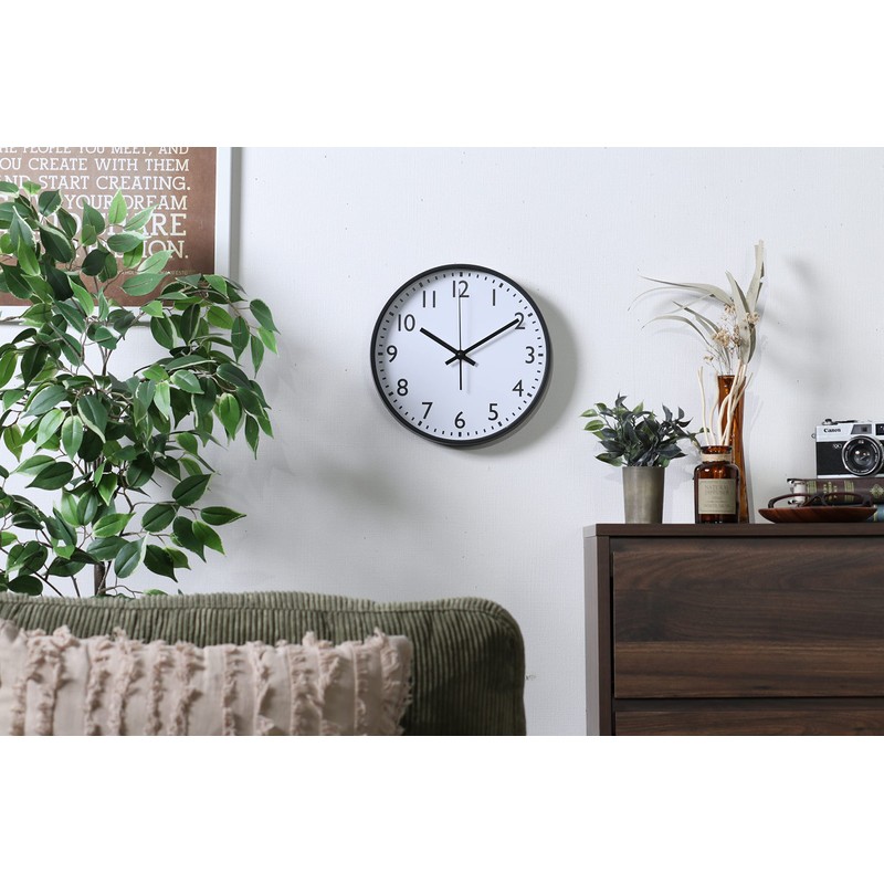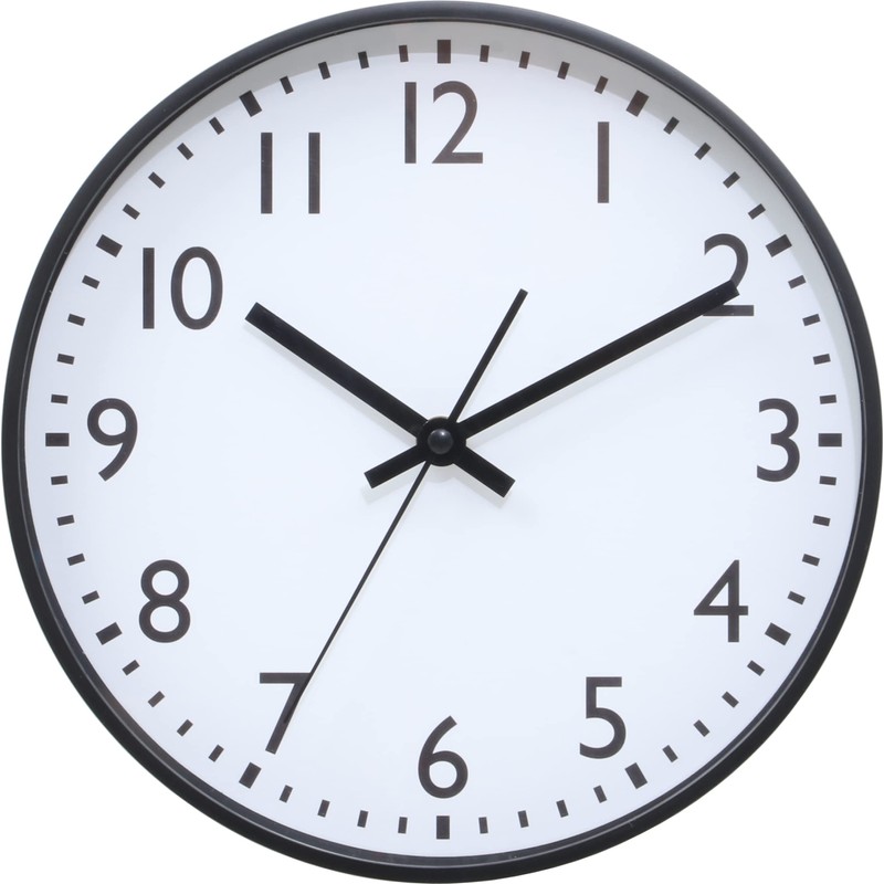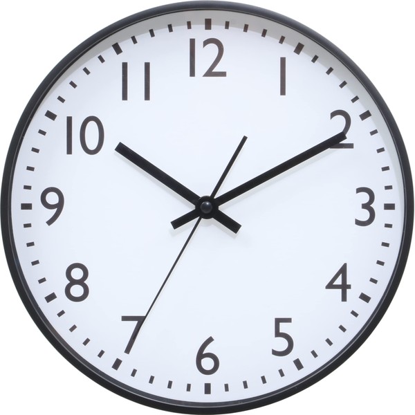 Fuji Boeki 37858 Wall Clock, Width 9.8 x Depth 1.6 x Height 9.8 inches (25 x 4 x 25 cm), Black, Silent, Continuous Second Hand, Simple, Small