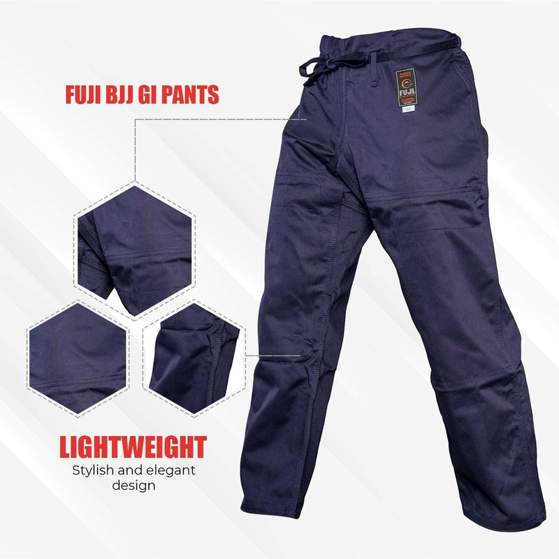 - Durable: Made with extra reinforcements, FUJI's durabel cotton blend fabric stands up to even the toughest training sessions. FUJI Gi pants are specially cut to provide a comfortable fit and full range of motion.