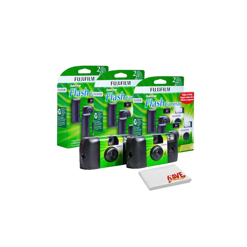 FUJIFILM QuickSnap Flash 400 One-Time-Use Disposable Camera with Flash (3X 2 Pack) Bundle with Microfiber Cleaning Cloth