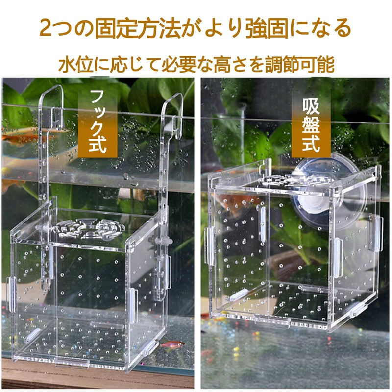 - (Product Specifications) Item Type: Aquarium Cultivation Box, Material: Acrylic, Color: Transparent, Scope of Application: Isolation of fish; Uses: Raising different fish simultaneously, isolating aggressive fish, injured fish, sick fish, shrimp etc. Optional Installation Size: Approx. 3.9 x 3.9 x 3.9 inches (10 x 10 cm) / 4.7 x 4.7 x 4.7 inches (