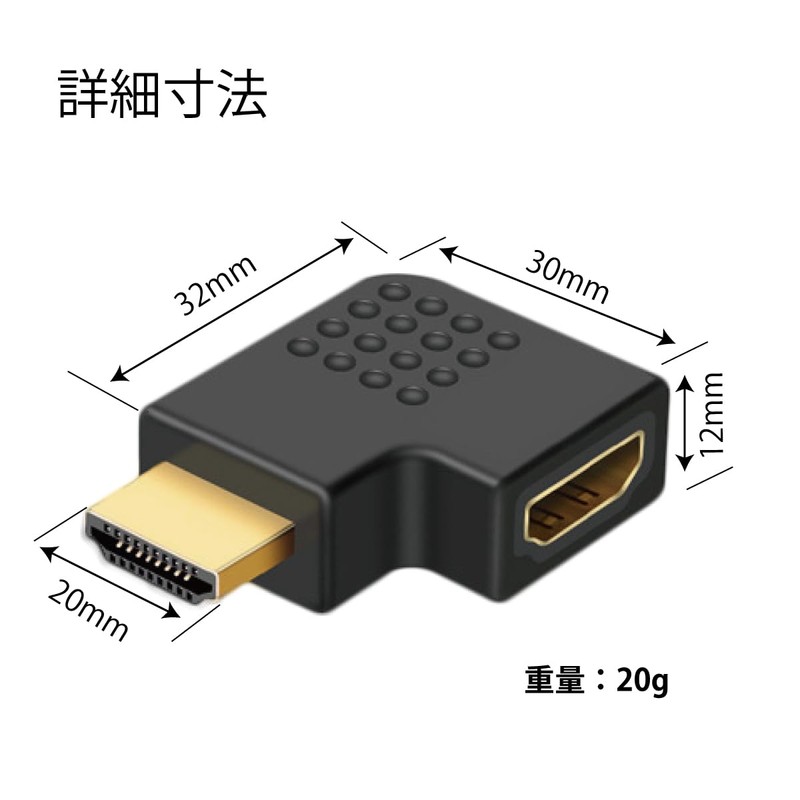 - [Uses] A right angle 9-angle adapter that changes the direction of the connection port of the HDMI cable. Space saving by changing the connection direction when connected to a wall, such as a TV, monitor, display, or other space behind the device when connecting video devices. In addition, you can change the direction from the HDMI connection port of your laptop to make your wiring neatly. Makes the most of your desk space