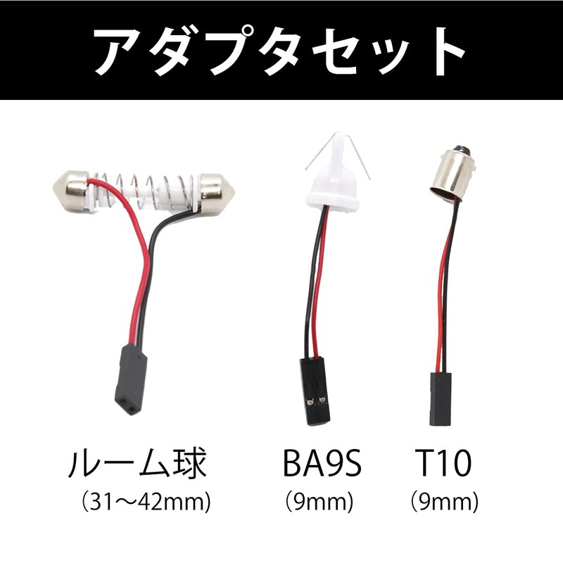 - (Set Contents) COB 48 LED panel x 1, T10 adapter x 1, BA9S adapter x 1, room bulb adapter x 1