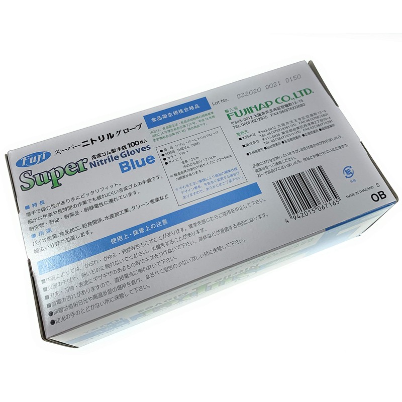 FUJINAP Super Nitrile Gloves, Blue, Powder-Free, Large, 100 Count