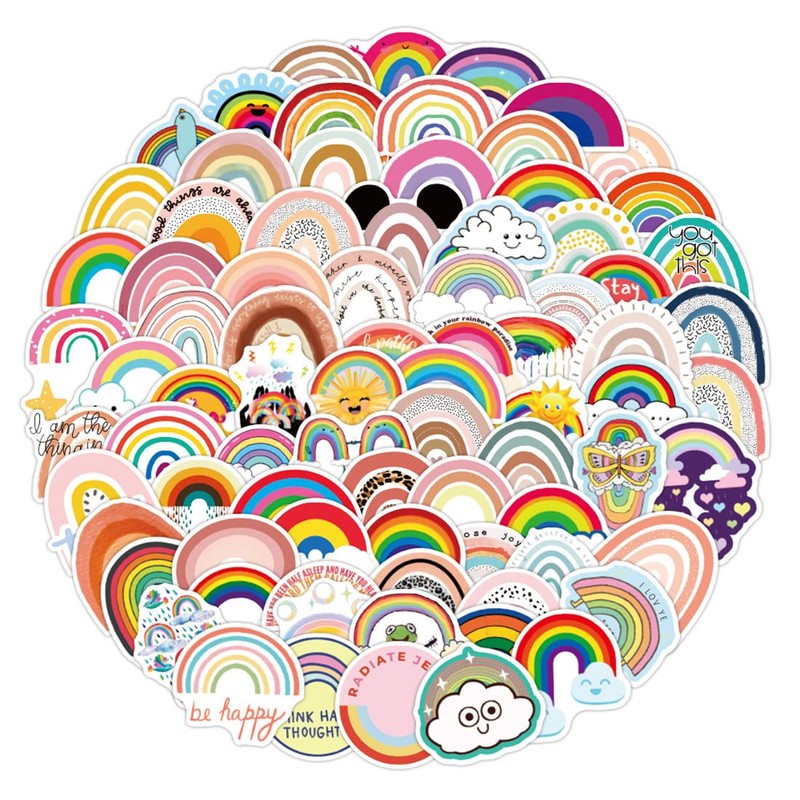 Fujitoya 100 Sheet Sticker Set, Waterproof, Rainbow, Decal, Stylish