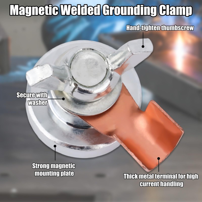 - Quick & Simple to Use: Easy to attach and secure—just clamp it onto a metal surface, fasten with a safety wire, and you’re ready to weld. No need to worry about hard-to-reach grounding points.