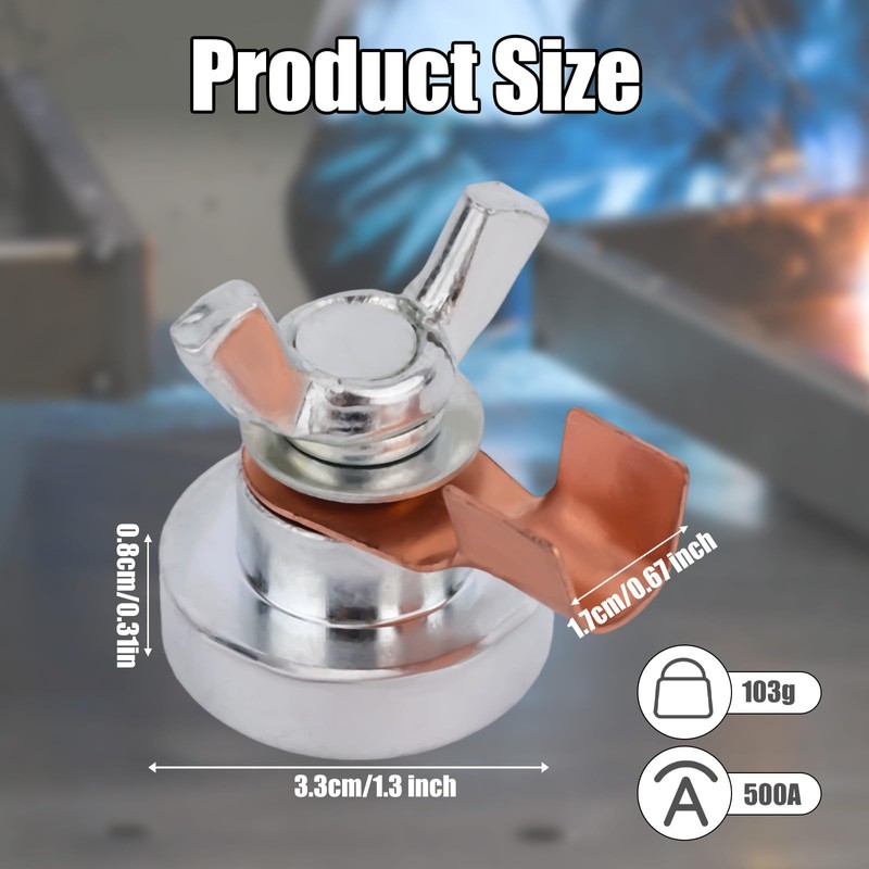 Product Size: welding magnetic grounding clamp: 3.3x3cm/1.3x1.18in; metal terminal: 4.5cm/1.77in long