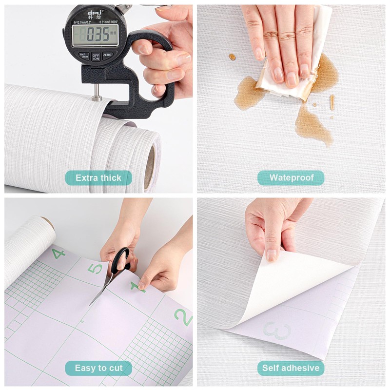 - LARGER SIZE--This peel and stick fabric wallpaper is 24 inch wide, there would be less seam in the surface than the narrow item.Can be applied to all objects with the smooth surface, such as kitchen counter, furniture, notebook, dresser drawer, crafts, bedside table, bookcase, door even wall, can meet your different DIY needs.