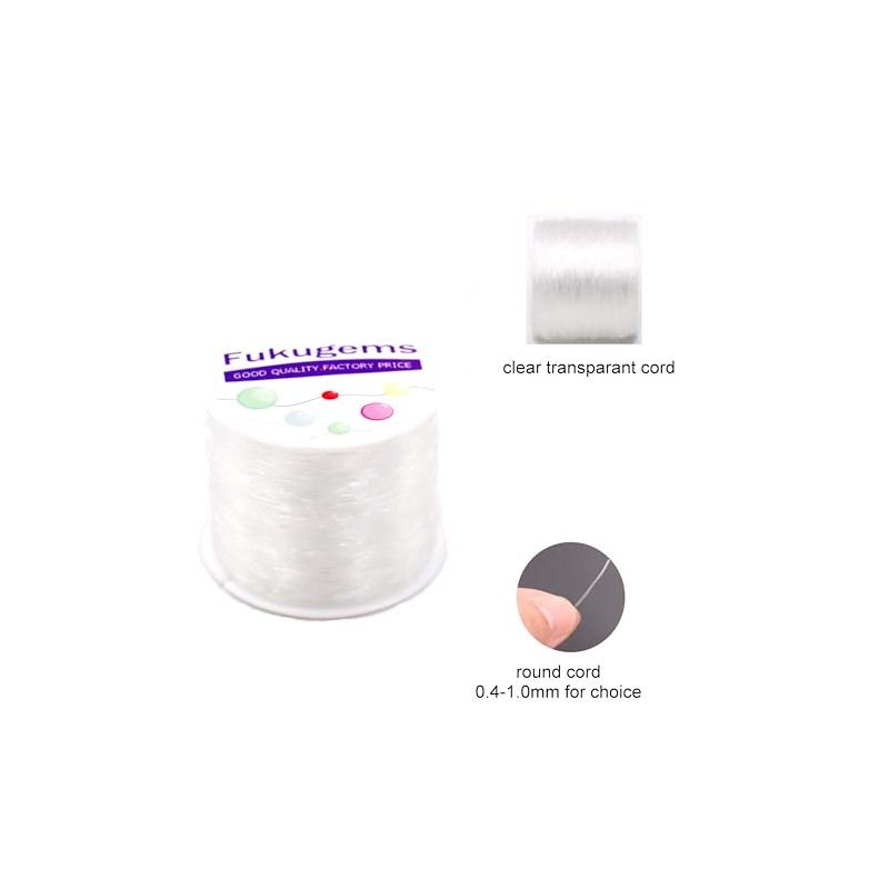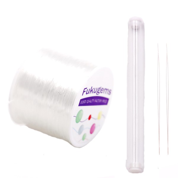 Fukugems Elastic Cord for Jewellery Making Bracelet Beads Thread, Stretchy Cord for Bracelets with 2 Pieces Beads Needles Clear 1.0 mm