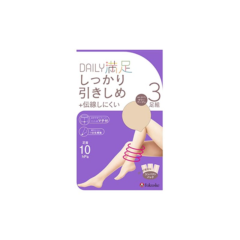 Fukusuke Women's Compression Non-Run Stockings, Set of 3 Pairs, sour beige