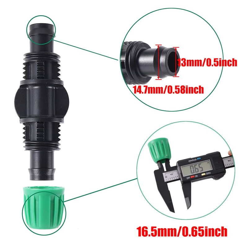 T-pieces suitable for drip irrigation 1/2 inch couplings for the outer diameter of 0.635-0.65 inch (16 mm-16.5 mm) hoses that hold the end of the pipe to provide a secure anti-drain connection and screw cap every time the fixed pipe is raised to secure the connection, it will bring you good experiences