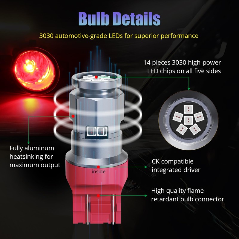 - Use 3030 automotive-grade LED chip for high illumination and driving safety, compatible with 7440 and 7443 for your factory bulbs, compatible with 7443 CK bulbs, built with constant-current circuitry, fully aluminum heatsinking for maximum output, long lifespan