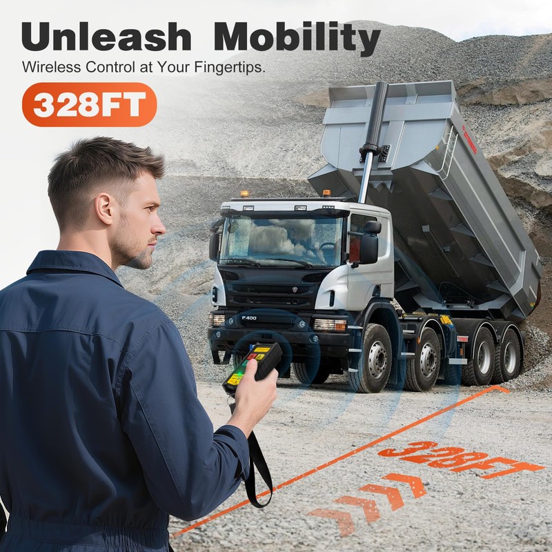 - 328FT Wireless Control Range + 0.01s Instant Response: Experience industry-leading control with this wireless dump trailer remote offering 328ft operational range and quick 0.01s response time. Perfect for precise maneuvering of remote control cranes and hydraulic tilt trailers with zero lag