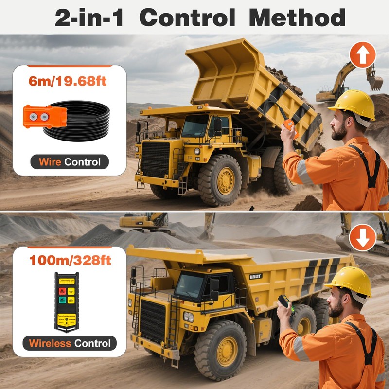 - 2-IN-1 Wired/Wireless Operation: Switch between wireless convenience (328ft range) and reliable wired connection (19.68ft heavy-duty cable, 0.31" thickness) - the ultimate dump trailer remote for both flexibility and fail-safe operation in signal-sensitive environments