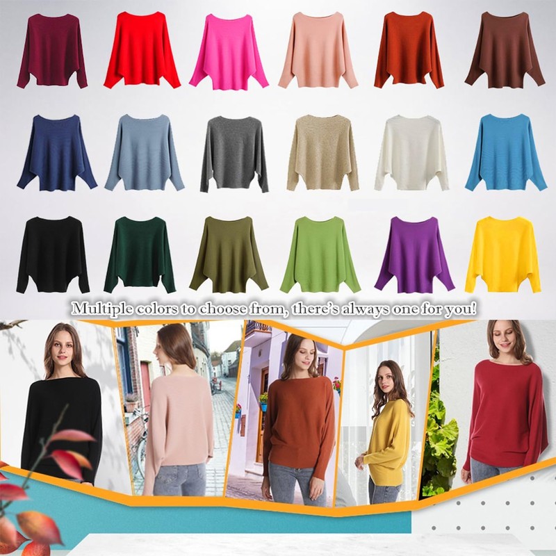 - 【Design】Boat neckline, bat dolman sleeves, solid color, ribbed knitted, loose pullover sweater design will give you a charming look