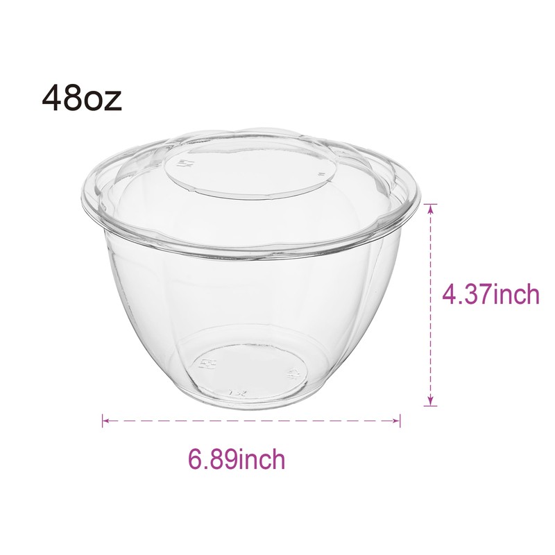 - GREAT VALUE PACK - Comes with 50 salad containers and 50 lids. Each container has a 48-ounce capacity. Measures approximately 6.89” Top Diameter x 4.37” Height.