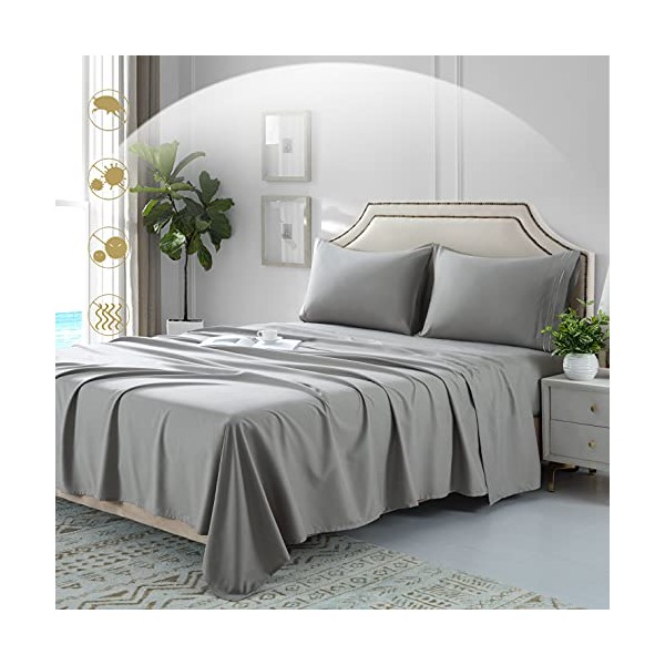 Full Bed Sheets Set -4 Piece Hotel Bed Sheets-Deep Pocket Full Sheets Cooling -Microfiber 1800 Thread Count Sheet Sets for Full Size Bed-Wrinkle and Fade Resistant (Grey, Full)…