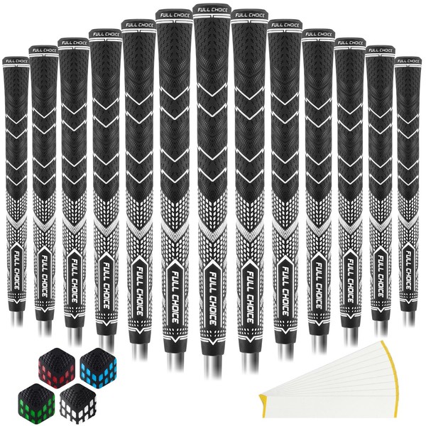 Full Choice Rubber Golf Grips 13 Pack, High Traction and Feedback, Non-Slip, Advanced Texture Control, 13 Grips Set, white, Standard Size, RG01 Golf Club Grips