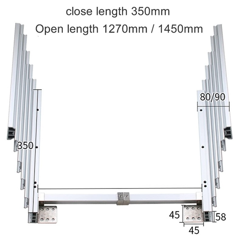 - [Flexible Extension]:Telescopic connecting rod is used to connect two guide rails, which can adjust the width range between 15.7-29.5''; and length of the guide rail is between 13.8-50'', which can be easily stretched to the desired length as required
