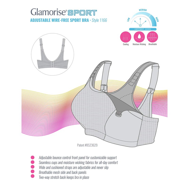 Full Figure Plus Size Custom Control Sports Bra Wirefree #1166 Black/Grey