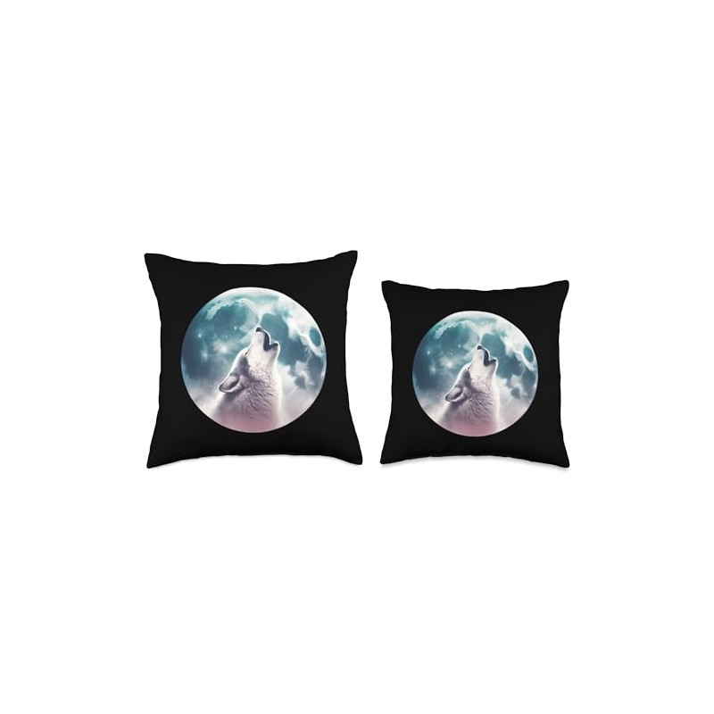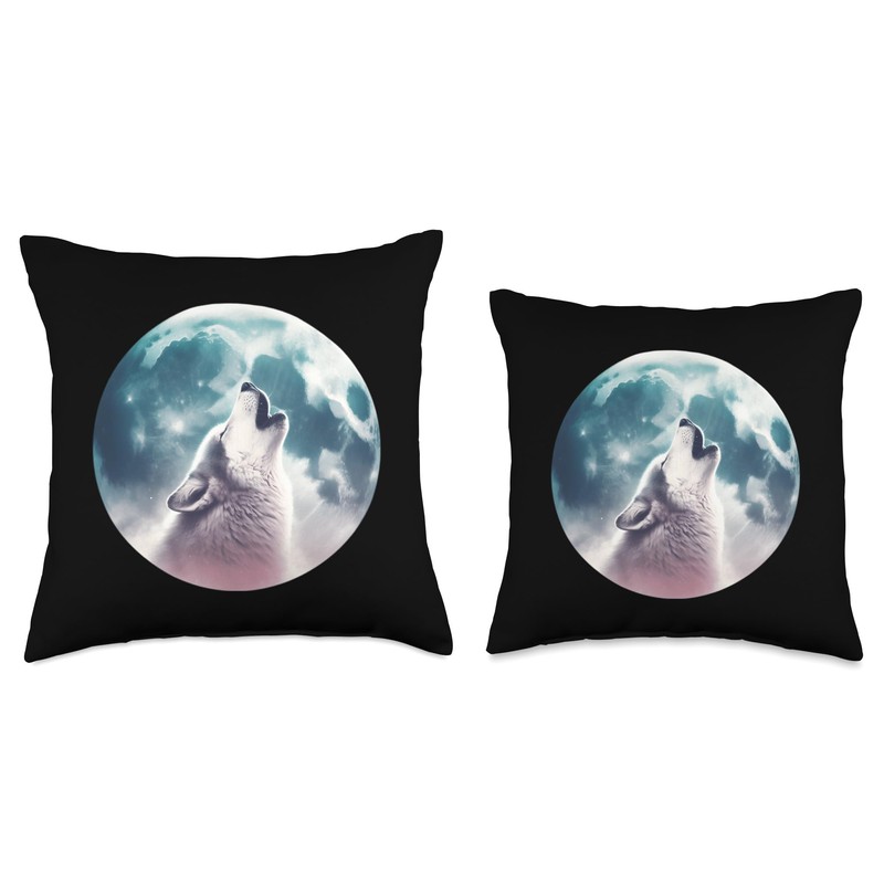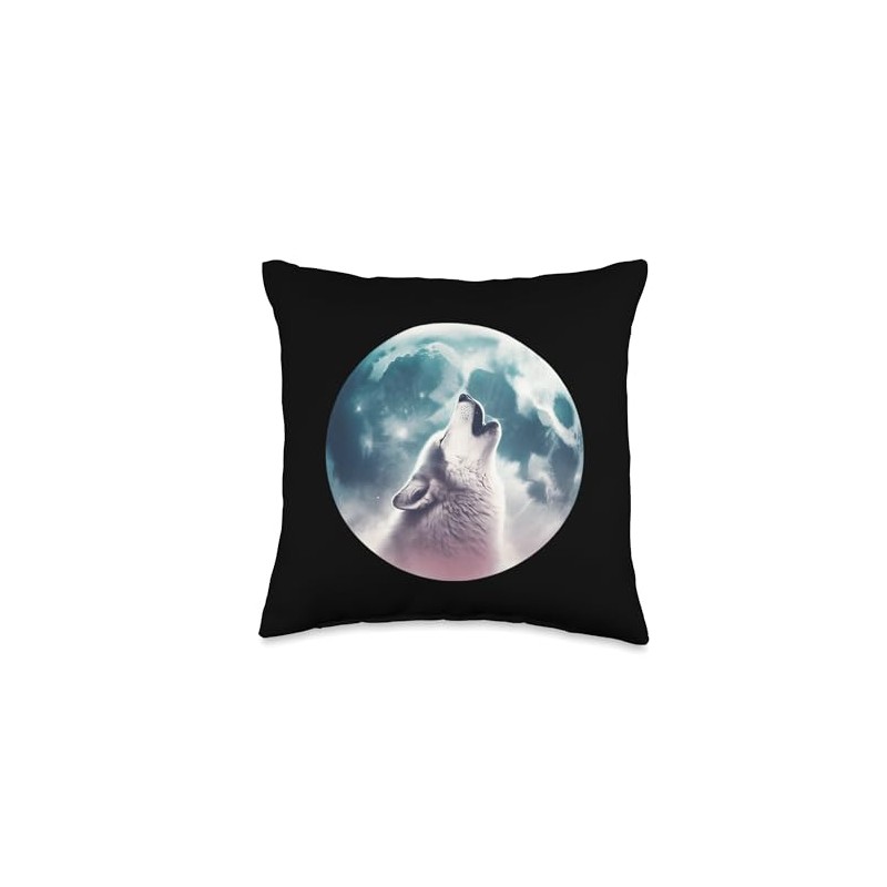 Full-Moon Howling Wolf Design Wolf Howling ICY Moon Forest Wildlife Hunting Ground Throw Pillow, 16x16, Multicolor