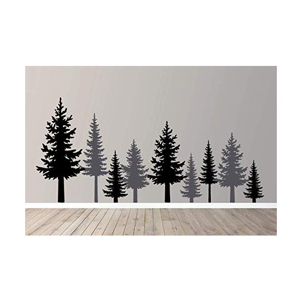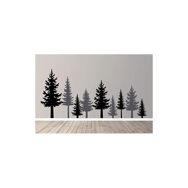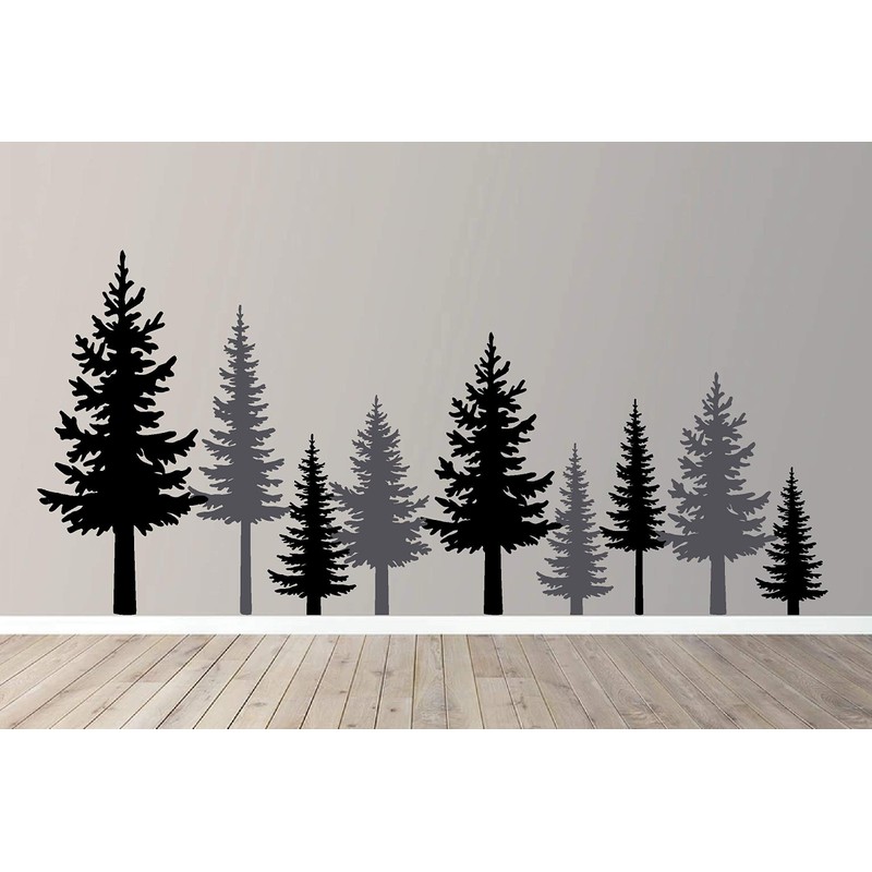 Full Pine Tree Branches Forest Winter Scene Silhouette Wall Decal Sticker Nature Woods Scene