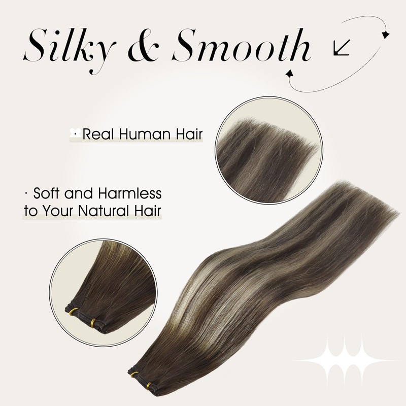Full Shine 22 Inch Genius Weft Hair Extensions Human Hair Sew In Extensions Brown Ombre Human Hair Extensions Weft Hand Tied Hair Extensions Color Darkest Brown To Blonde Mix Darkest Brown 60G