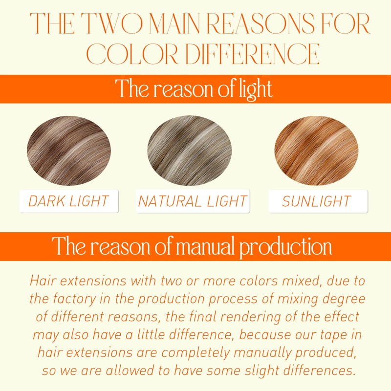 3.About color: Our Tape Hair can be colored darker but not lightened. always test a small piece when you dye.