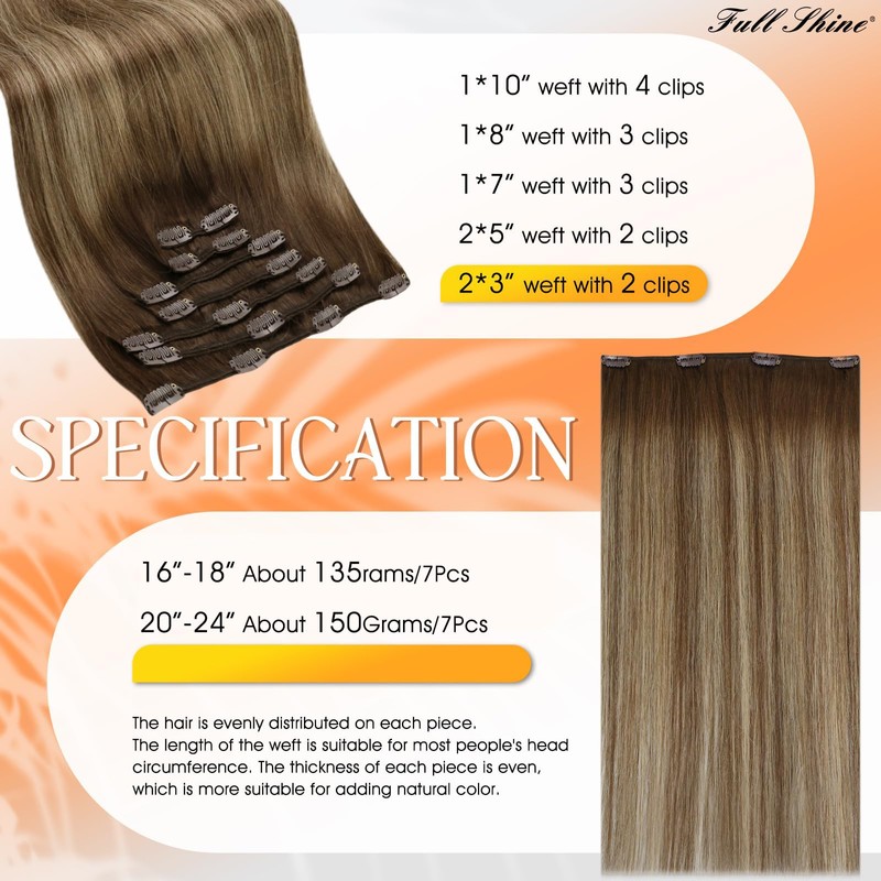 - Elevate your look with the ultimate hair extensions for women: Full Shine clip in hair extensions, 1*10" Wide Weft With 4 Clips, 1*8" Wide Weft With 3 Clips, 1*7" Wide With 3 clips, 2*5" Wide Weft With 2 Clips Each, 2*3" Wide With 2 Clip Each