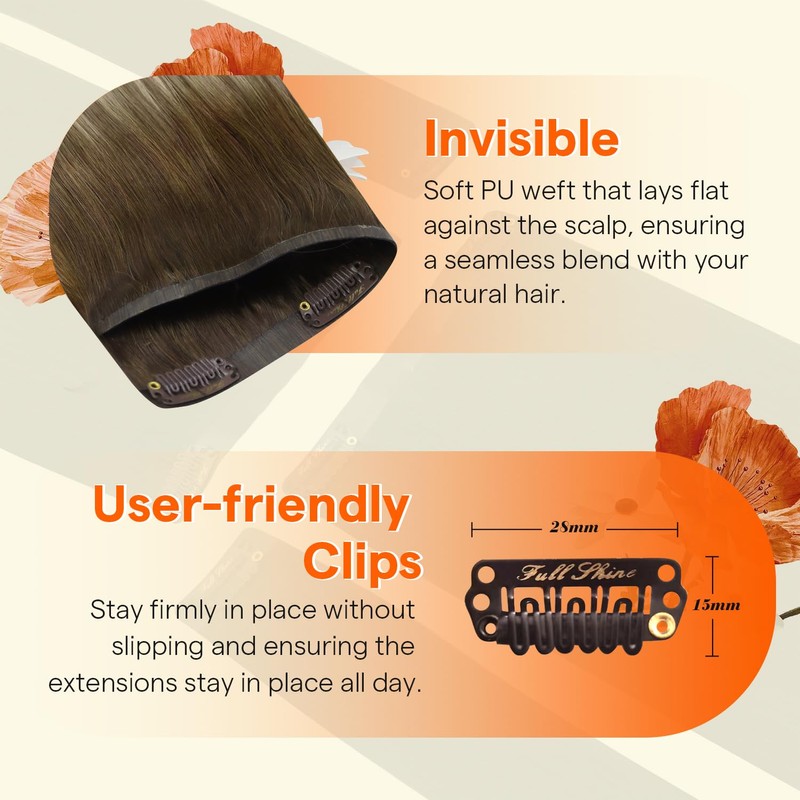 Each extension features a thin, flexible polyurethane PU Weft that lays flat against the scalp, ensuring a seamless blend with your natural hair. Made from real human hair, soft, silky texture that mimics your own hair.