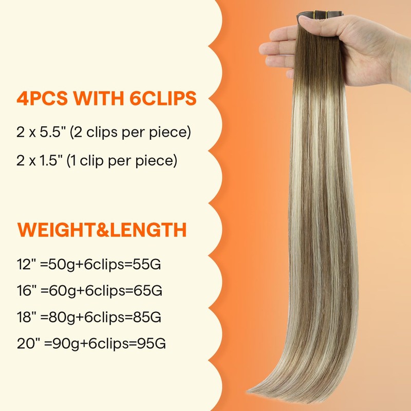 - Targeted Volume Boost: The 4-piece seamless clip-in extensions are specially designed to add fullness to specific areas. Whether you want to enhance volume at the crown or sides, it offer flexible, precise thickness and higlight shade where it's needed