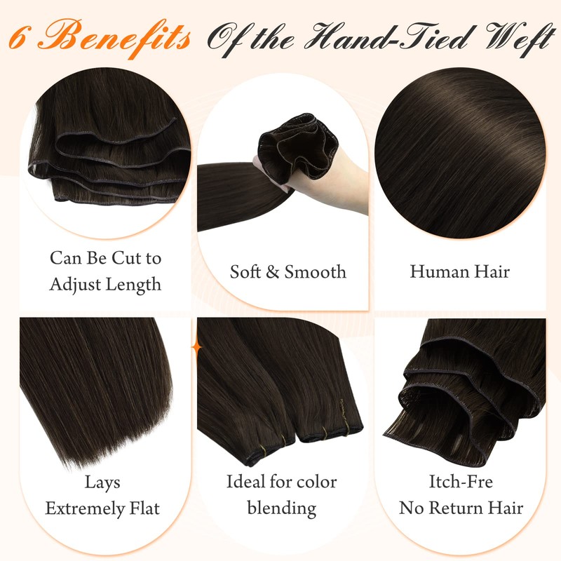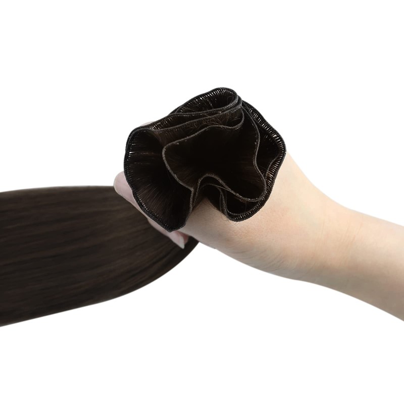Full Shine Sew in Hand Tied Weft Hair Extensions Wefts Human Hair Double Weft Sew in Extensions Remy Human Hair Natural Brazilian Hair Dark Brown Color #2 60 Gram 20 Inch